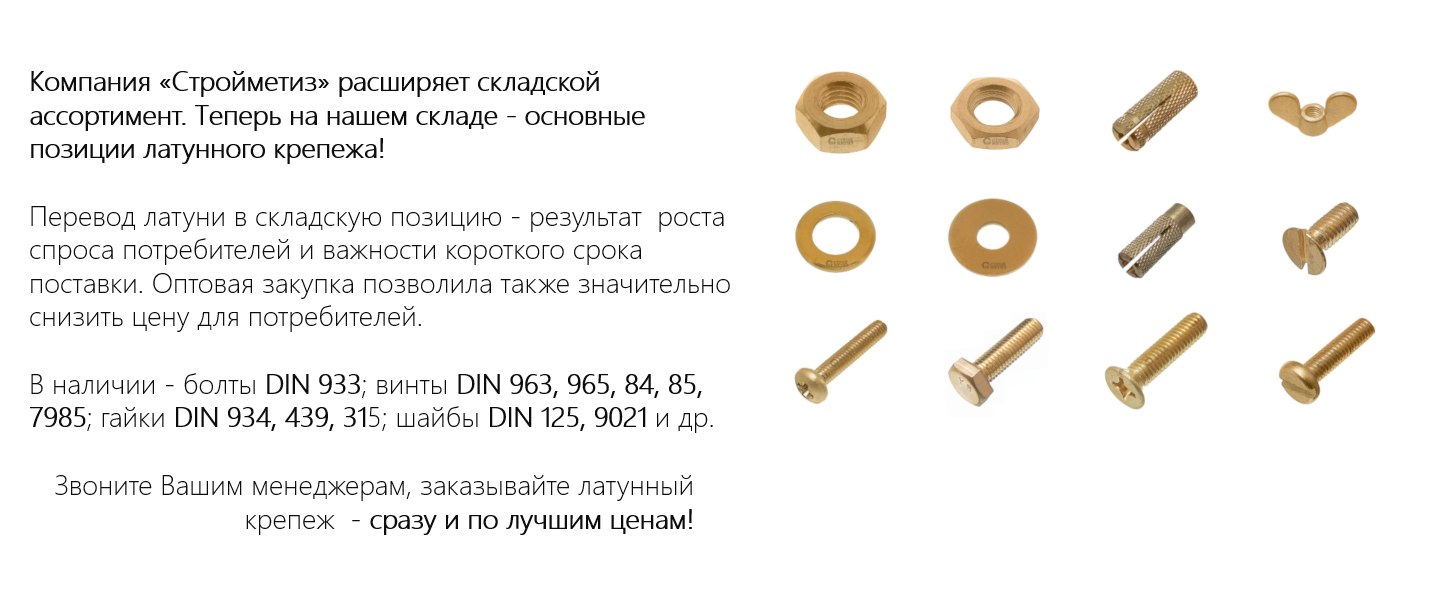 Латунный крепеж - всегда на складе